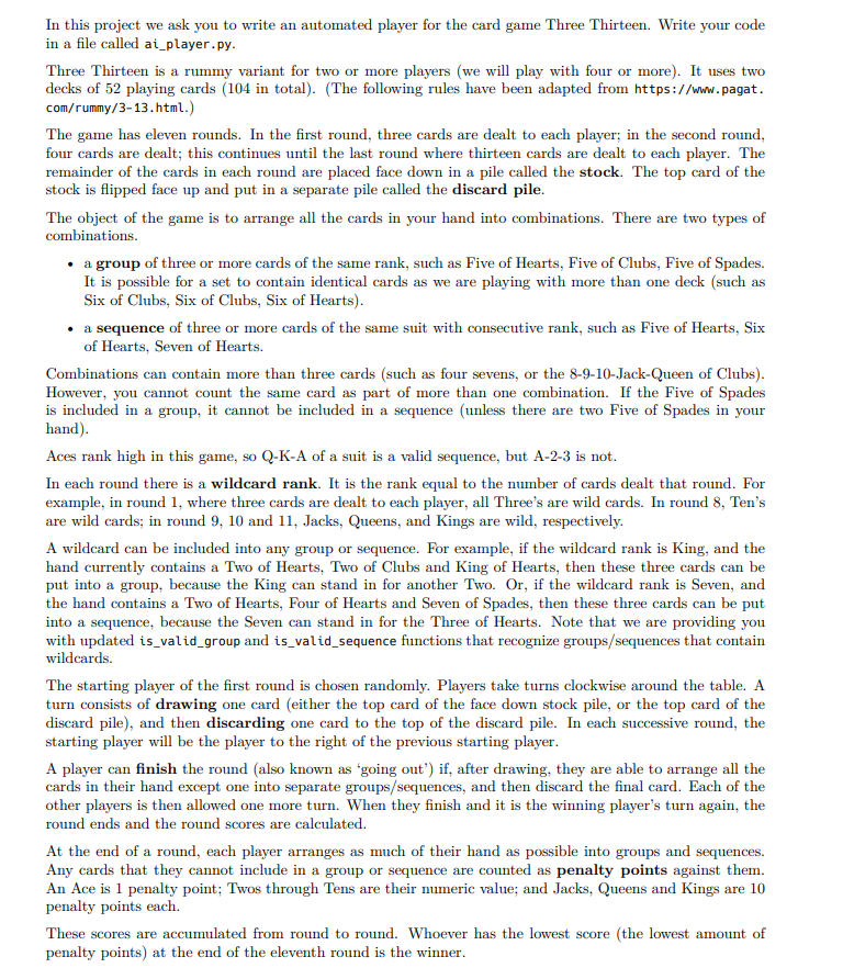 How to play Thirteen a simple two-player card game by Alex Olesen in which players get rid of cards by playing a card one higher or one lower than the previous play. Anything else you play besides trying to take the trick with an honor would allow them to make a thirteen with your card which is a no-no. In each round there is a wild card.